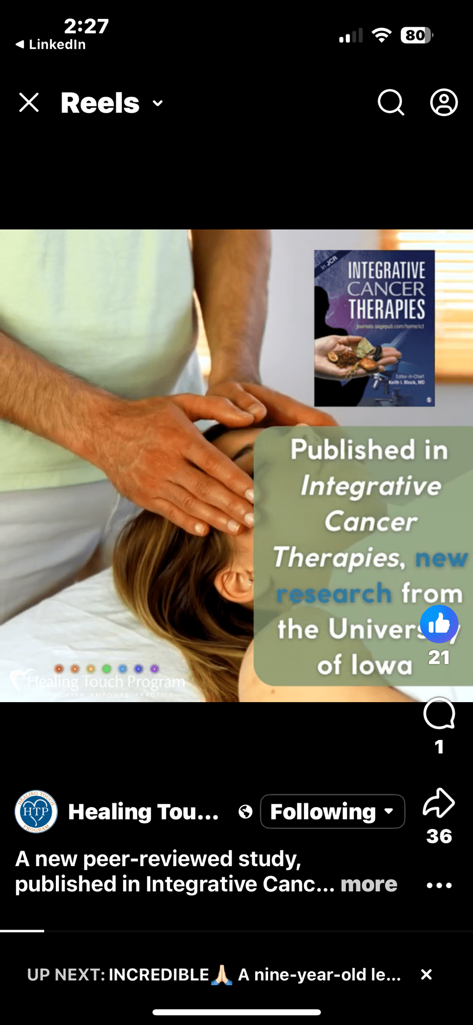 Recent studies support what practitioners of Healing Touch see every day – with balance & care for the energy system, the body heals better and maintains health even when dealing with illness. (this current study – cervical cancer)